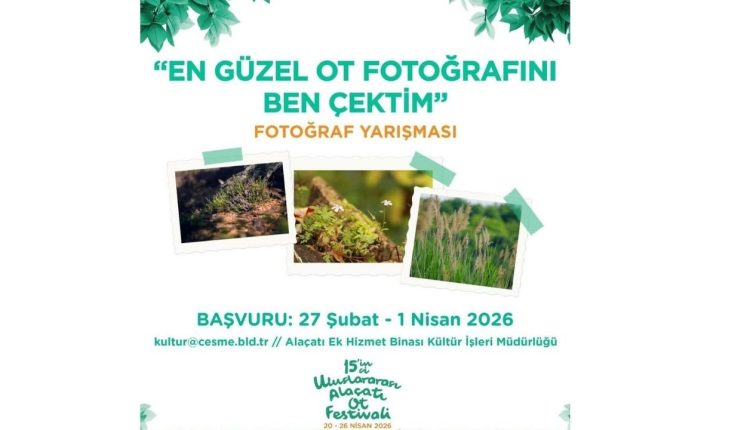 Çeşme Belediyesi, 15. Uluslararası Alaçatı Ot Festivali kapsamında fotoğraf tutkunlarını buluşturacak bir yarışma düzenliyor. “En Güzel Ot Fotoğrafını Ben Çektim” adlı etkinlikte, Çeşme doğasında yetişen otların en güzel halleri ve festival coşkusunu yansıtan kareler ödüllendirilecek.