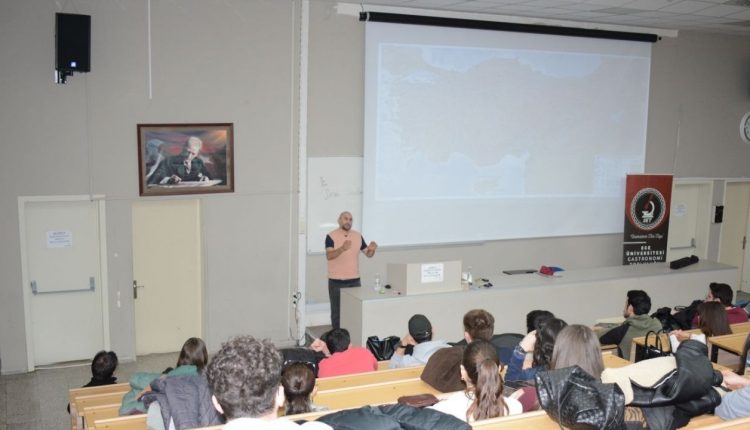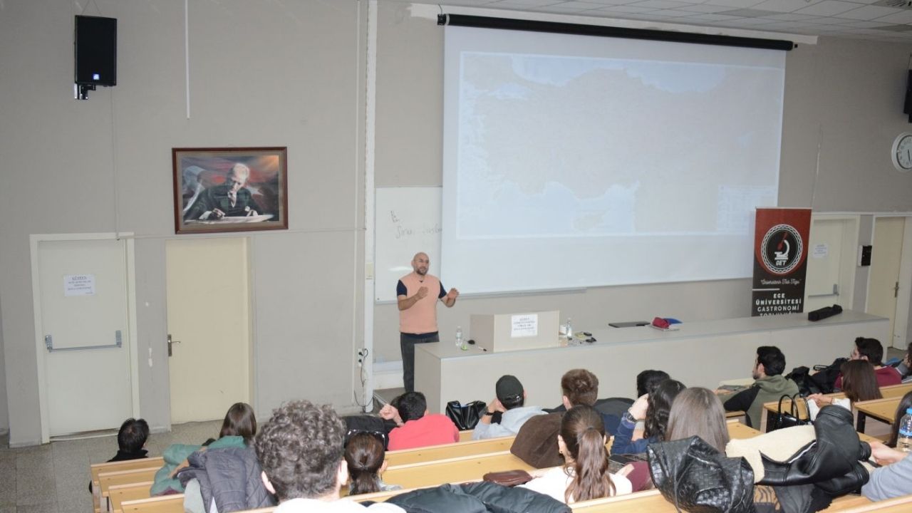 Ege Üniversitesi Gastronomi Topluluğu, mutfak kültürünün derinliklerine inen bir etkinliğe ev sahipliği yaptı. Tıp Fakültesi B Amfisi’nde düzenlenen “Ege ve Akdeniz Mutfak Kültürü” söyleşisine Ziraat Mühendisi ve Gastronom Tangör Tan katıldı. Yerel üretimden küresel tarım politikalarına, mutfak tarihinden bilinçli tüketime kadar geniş bir yelpazede konular ele alındı.