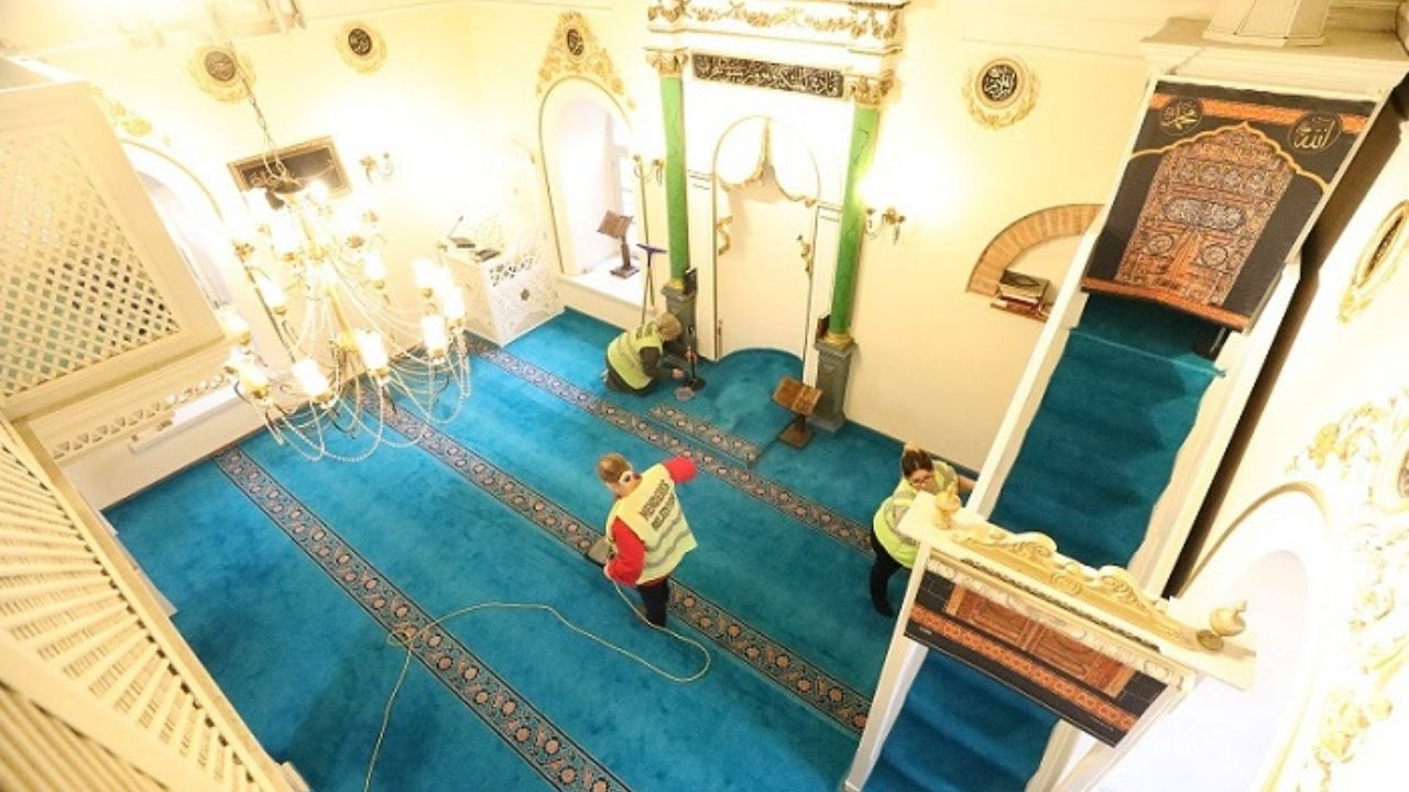Ekipler, halılardan avizelere, minberlerden şadırvanlara kadar tüm alanları tek tek temizliyor. Yıl boyu süren düzenli bakım, Ramazan ayında daha da yoğunlaştı.